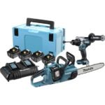 O kit profissional Makita traz duas ferramentas indispensáveis para quem atua em áreas que vão do paisagismo à construção civil. A Motosserra DUC353, movida a bateria, oferece cortes limpos com baixo nível de ruído, tornando o manuseio mais confortável e seguro. Já a Parafusadeira/Furadeira de Impacto DHP486 conta com torque ajustável e múltiplas velocidades, permitindo perfurações em aço, madeira e alvenaria.